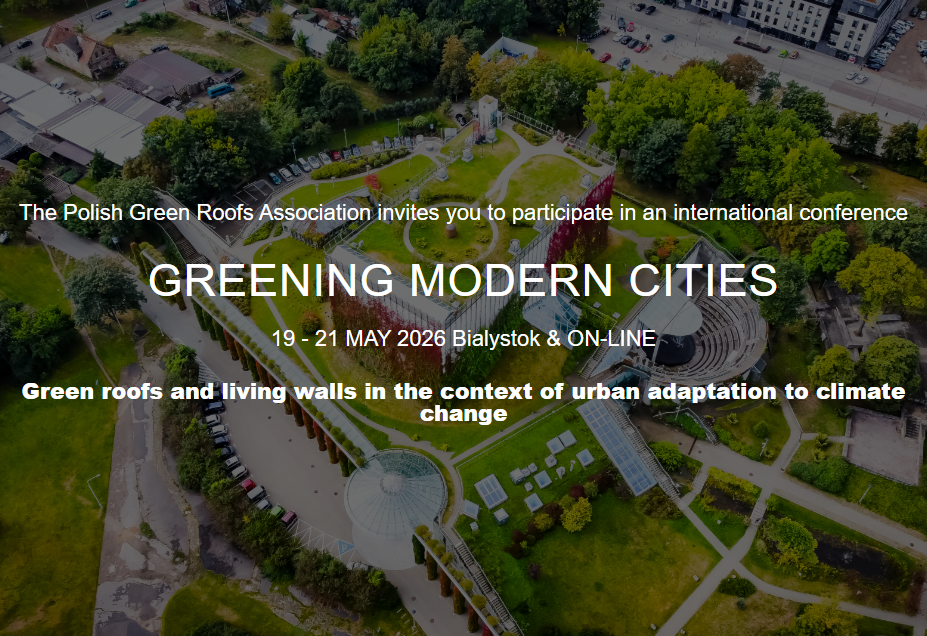 Bialystok University of Technology 45 E Wiejska St. 15 – 351 Białystok, Poland, Bialystok, PolandThe Polish Green Roofs Association invites you to participate in an international conference "Greening Modern Cities - Green roofs and living walls in the context of urban adaptation to climate change" on 19 - 21 MAY 2026 Bialystok & ON-LINE. We would like to invite you to the international conference “Greening Modern Cities”. The Polish Green Roofs Association (PSDZ) is ...